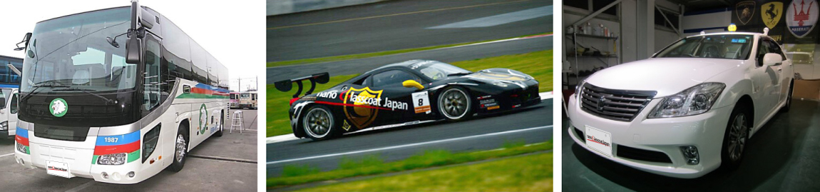 ナノグラスコートSVは、日本を含め世界7か国で使用されており、海外大手自動車メーカーにも供給しております。海外では日本より厳しい環境もありますが、その品質を認められ評価されています。また、乗用車はもちろん、レーシングカーやタクシー、重機、国内大手観光バス会社にもその品質を認められ、外装や雪道走行でダメージを受ける下廻りの保護目的で導入され車両管理コスト削減に貢献しております。